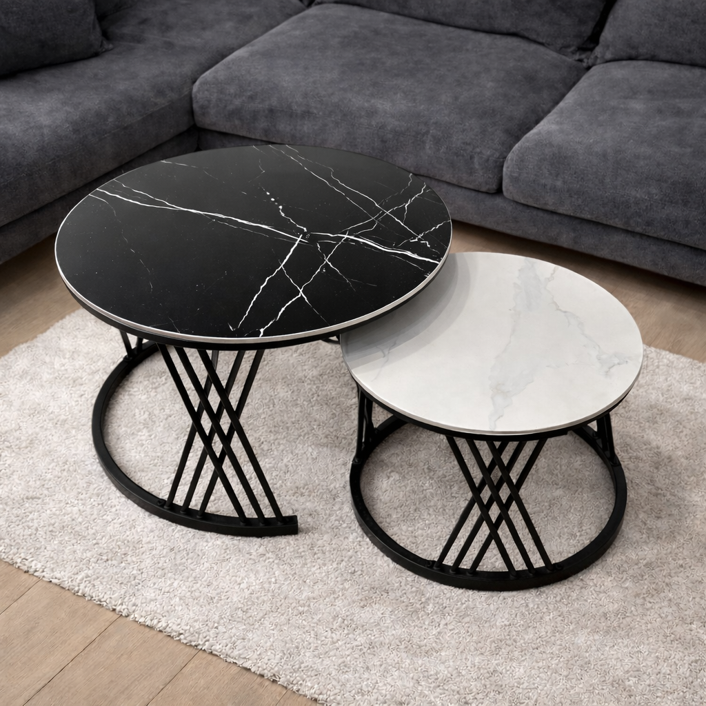 2-ը 1-ում կառուցվածքը սեղանների գլխավոր առավելություններից մեկն է։ Դրանք կարելի է օգտագործել միասին՝ ստեղծելով կոմպակտ և ամբողջական կոմպոզիցիա, կամ առանձին՝ ըստ տարածքի կազմակերպման և ձեր կարիքների։ Այս ճկուն լուծումը թույլ է տալիս հեշտությամբ փոփոխել ինտերիերի դասավորությունը՝ առանց լրացուցիչ կահույքի անհրաժեշտության։ Սեղանները հարմար են ինչպես փոքր, այնպես էլ ավելի ընդարձակ տարածքների համար։